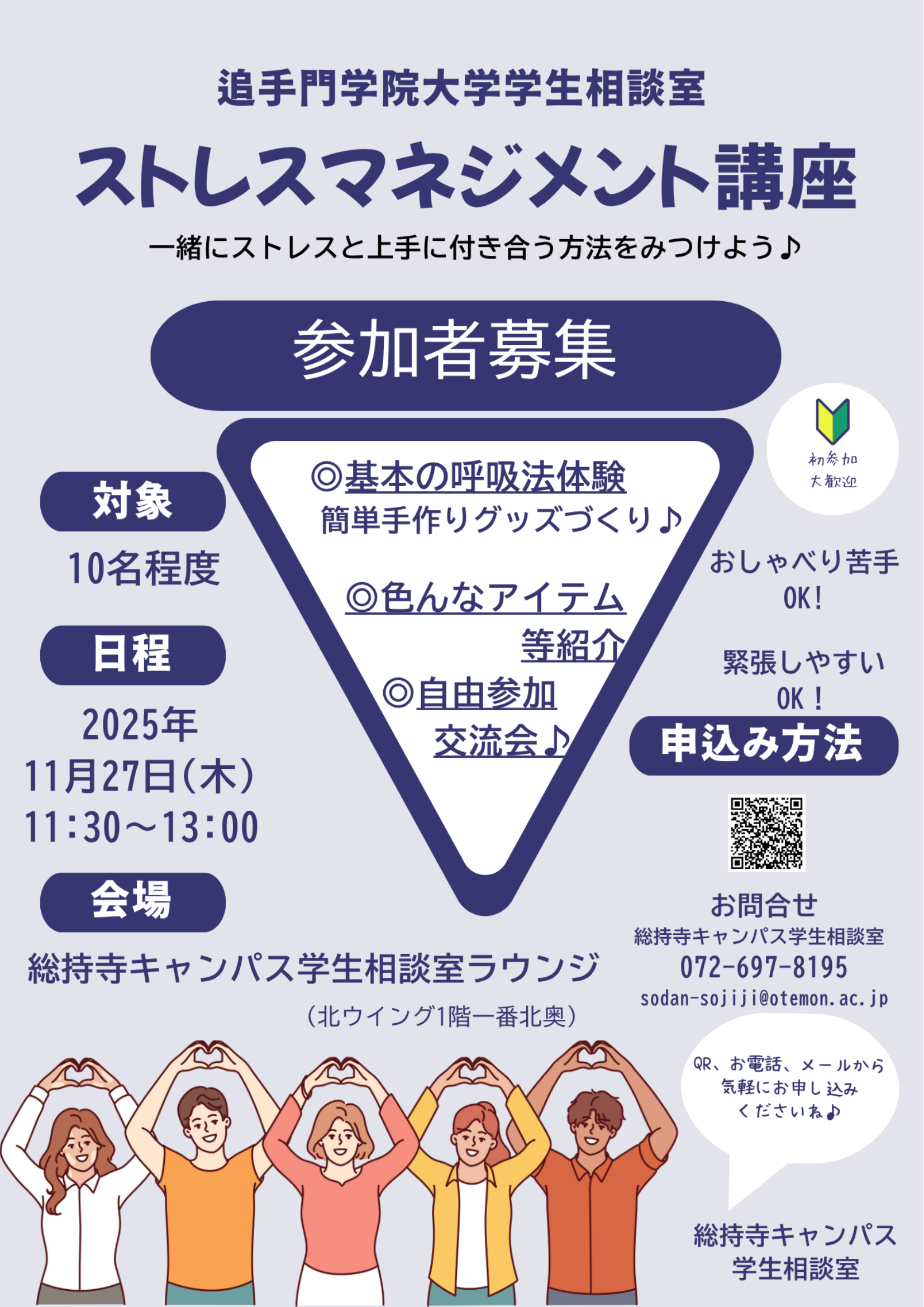 また、「こんなことが自分でできる」「こんなテーマがあるといいな」というご希望の企画がありましたら、学生相談室までお申し出下さい。