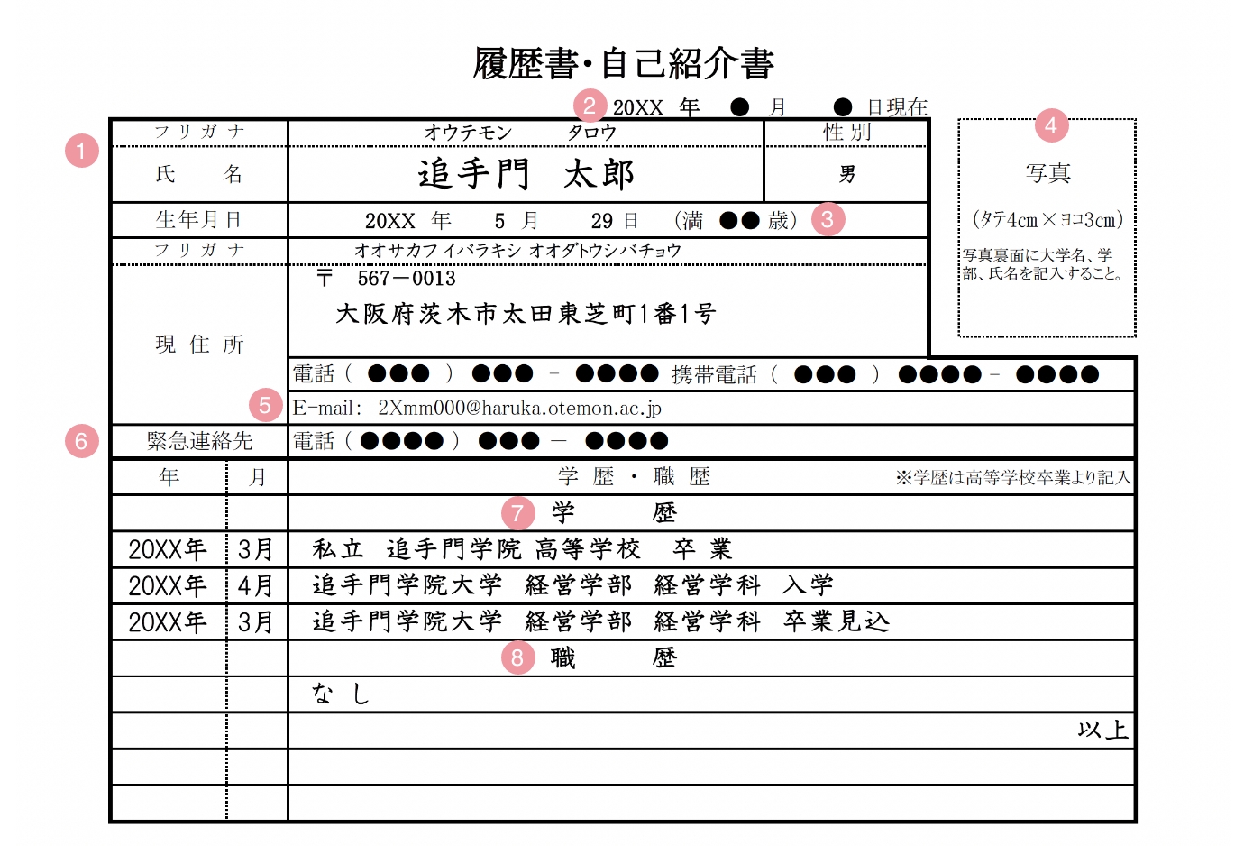 必ず大学指定の履歴書を使用します