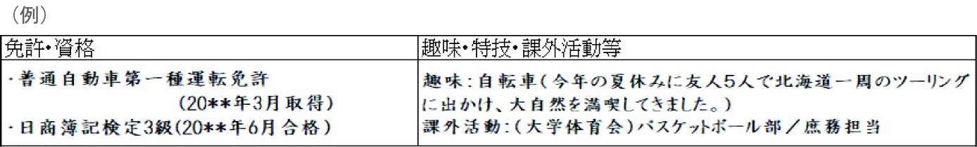 ※免許・資格を何も持っていない場合は「特になし」と記入する。