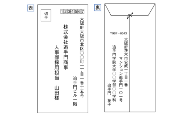 学校指定の封筒は就職・キャリア支援課で無料で配布しています。