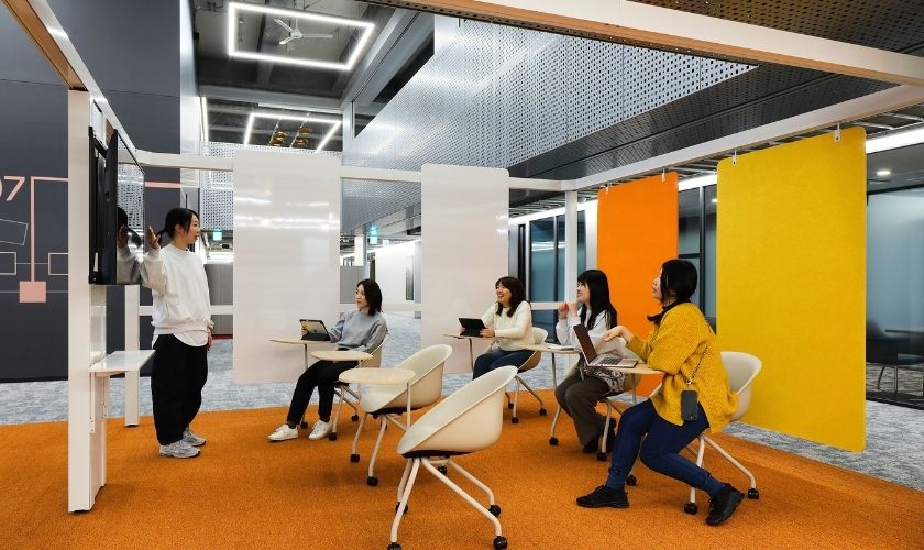 "Academic Base," opening in April 2025 at Otemon Gakuin University, features the Innovation LAB within its core. This collaborative space connects classrooms and research offices on the same floors, enabling students to engage in cross-disciplinary projects "anytime, anywhere".
