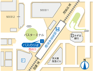 *Please take Bus No. 82 or 88 at the bus stop No.10 in JR Ibaraki station bus terminal.