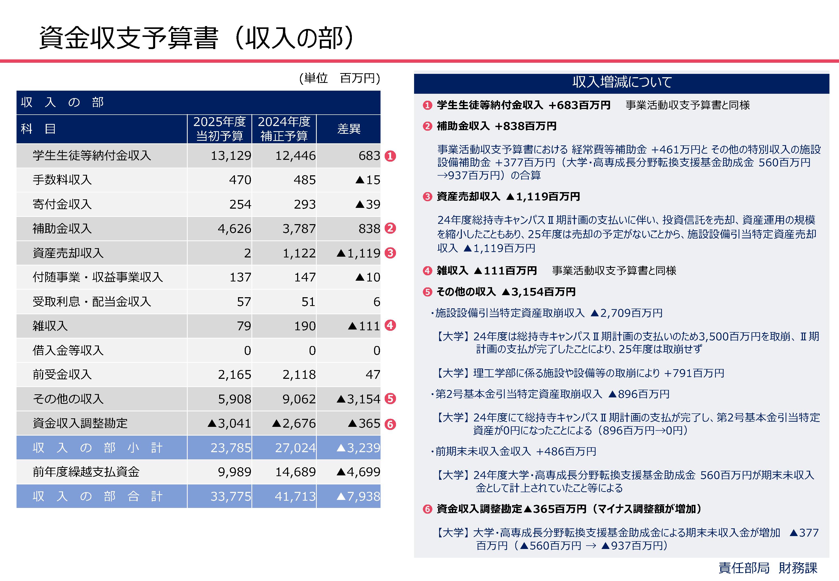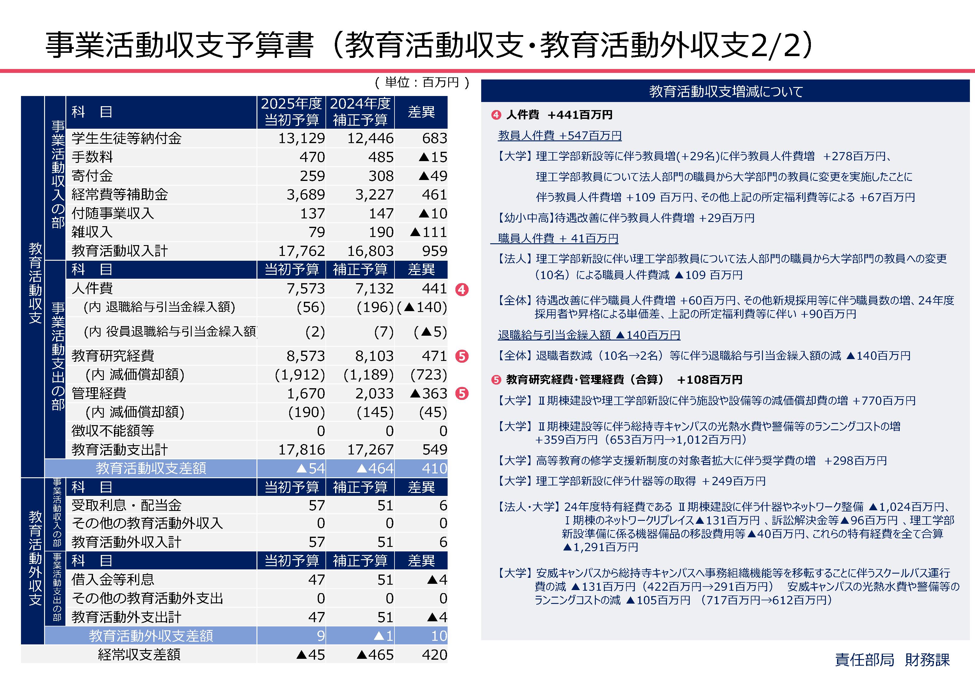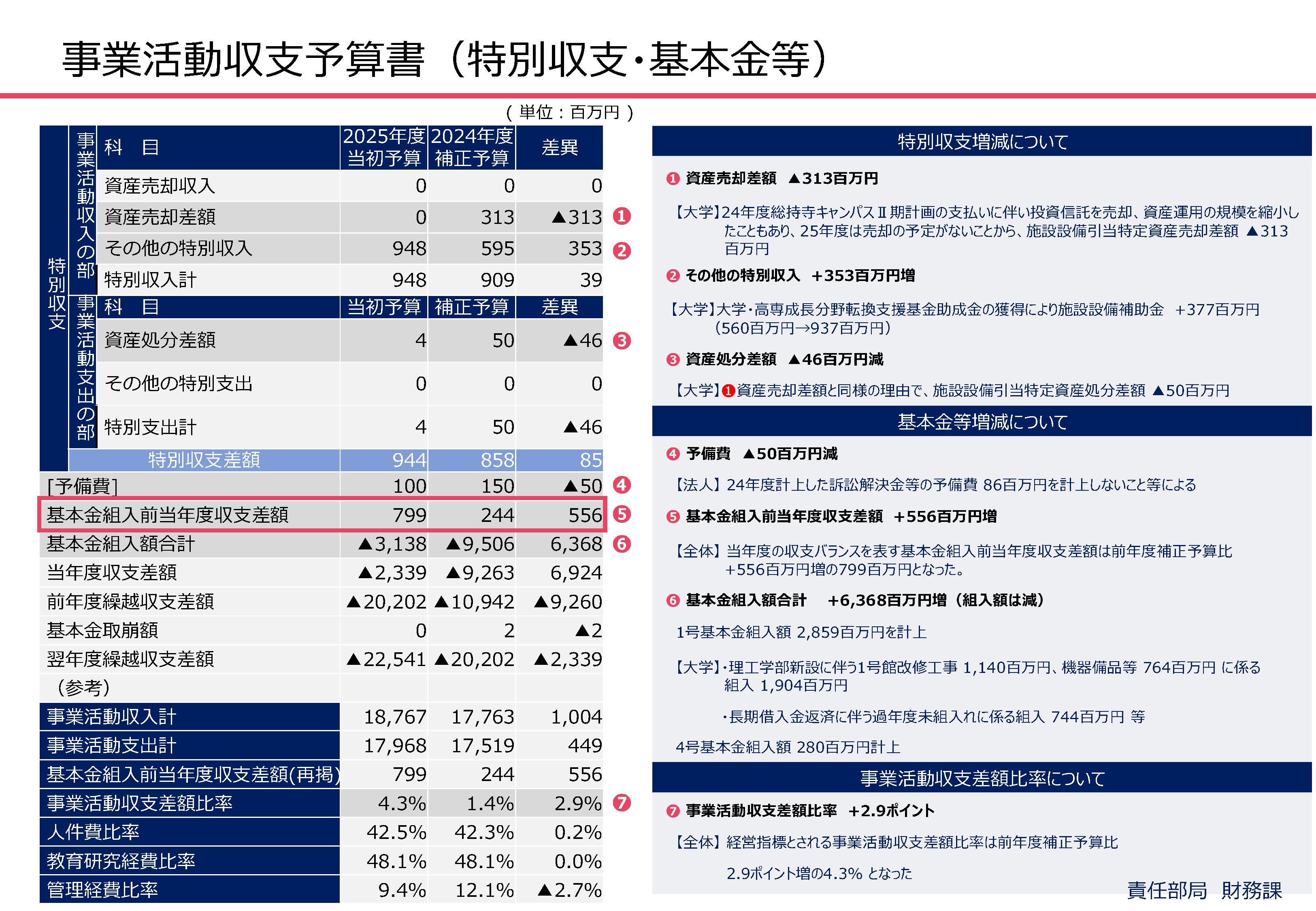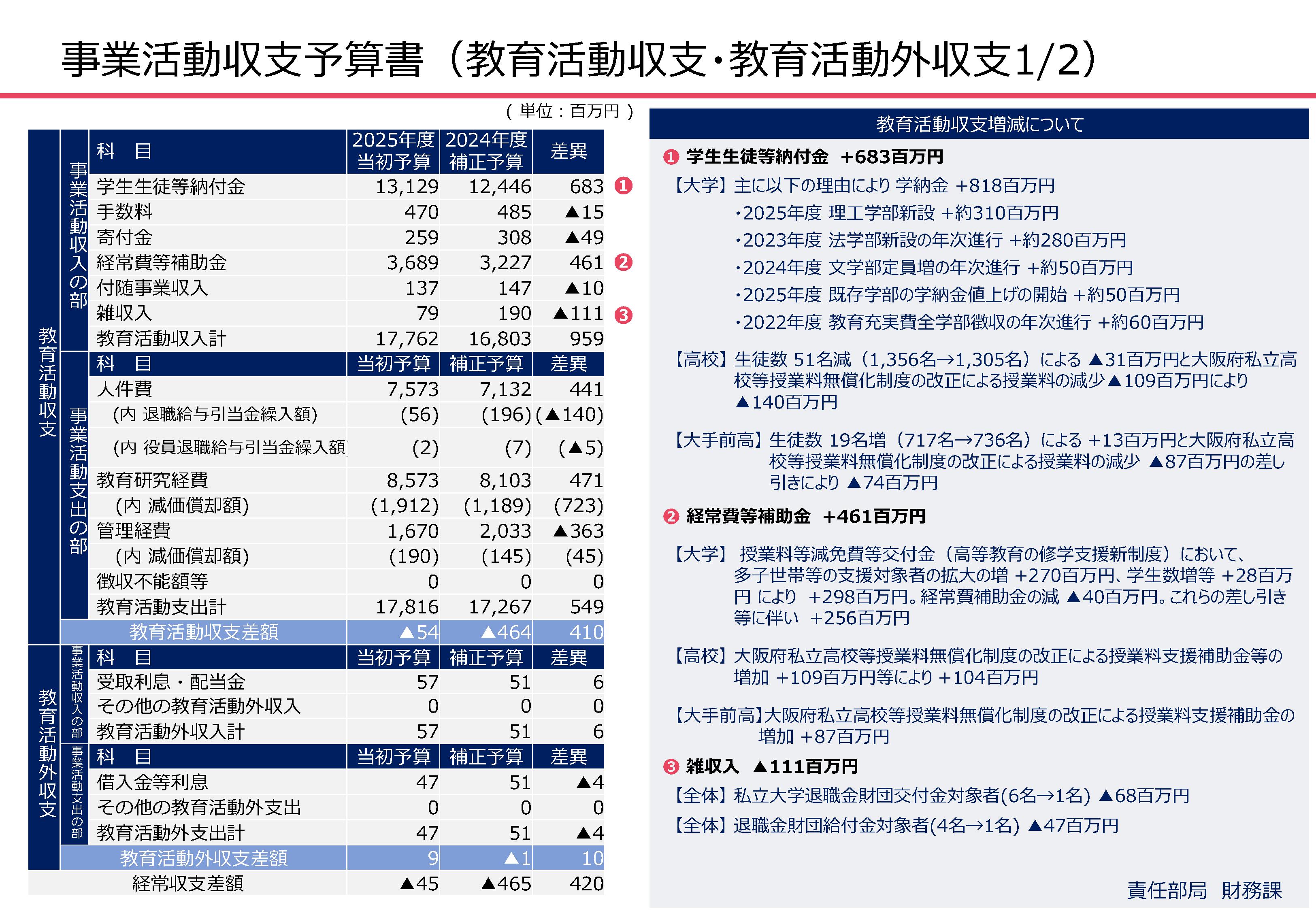 この達成に向け、必要と考えられる箇所については積極的に資金を配分していくつもりですが、支出できる資金には限りがあります。とりわけ、来年2025年度からは第二の開学と位置付ける大学における総持寺・安威との2キャンパス化に伴い、さらに多くの資金需要が見込まれています。