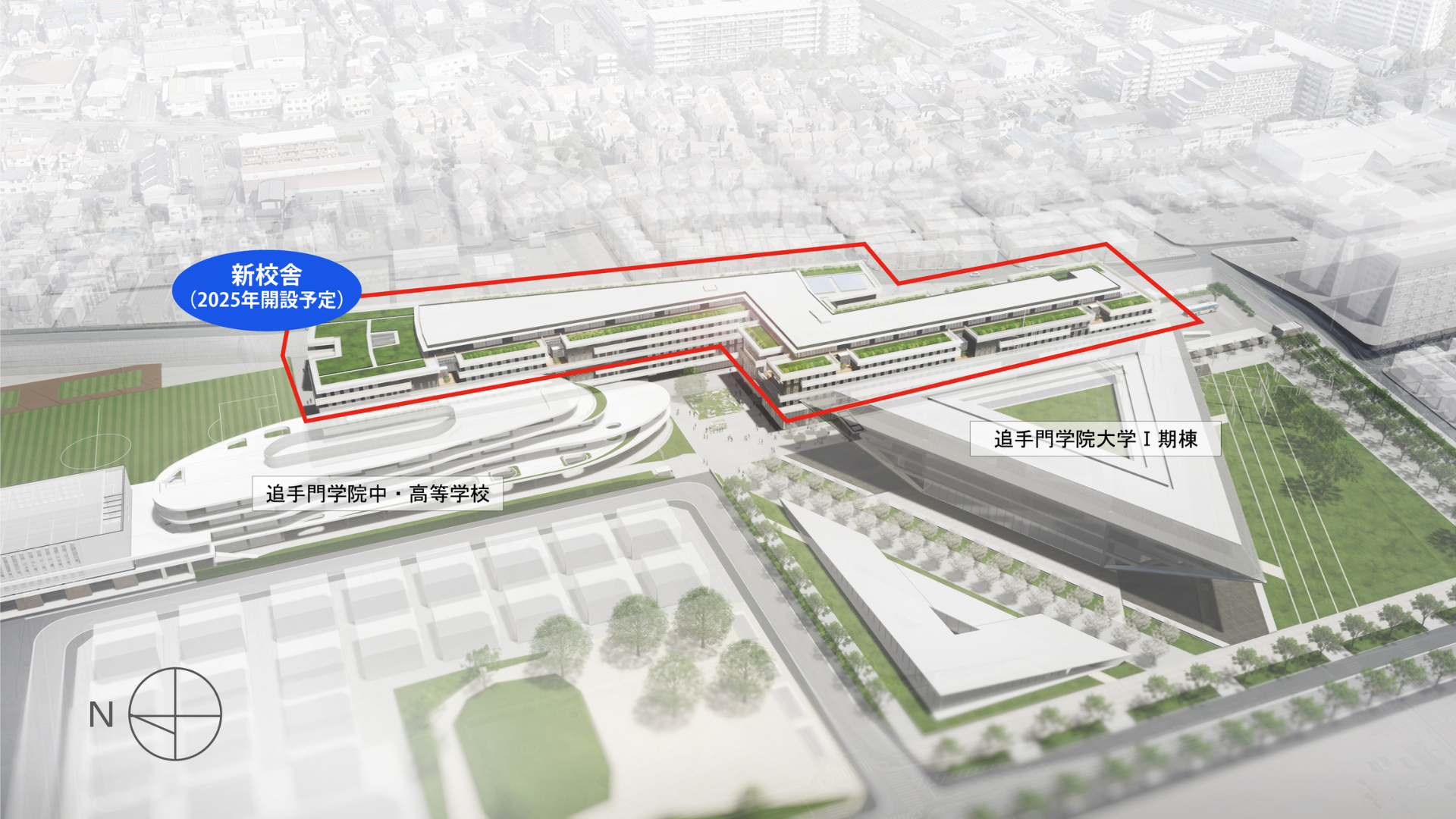 追大は2022年4月から6年間の第Ⅳ期中期経営戦略に基づいて文理を超えた学びを推進し、法学部新設および理系学部開設構想などにあわせ、既存学部のキャンパス配置を見直し、茨木総持寺キャンパスに大半の学部・大学院および本部機能を集約させ、2025年4月から茨木総持寺キャンパスを拠点化します。これに合わせ、地上6階建て南北に約250mの新校舎(Ⅱ期棟)を建設し、約8000人の学生が集う学術・教育拠点へと進化させ、教育・研究力向上のための経営基盤の安定化と学部多様性の確保によるイノベーション創出を目指します。