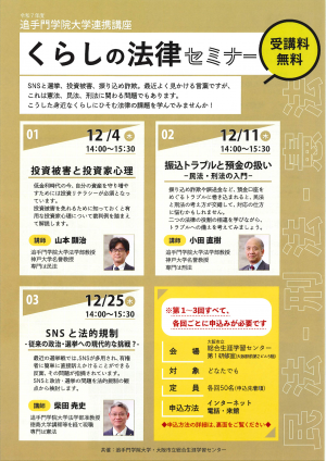 「くらしの法律セミナー」と題する連携講座を開催します。