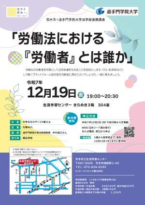 2025年12月~2026年3月に茨木市×追手門学院大学法学部連携講座として、茨木市立生涯学習センターで3講座を開催します。