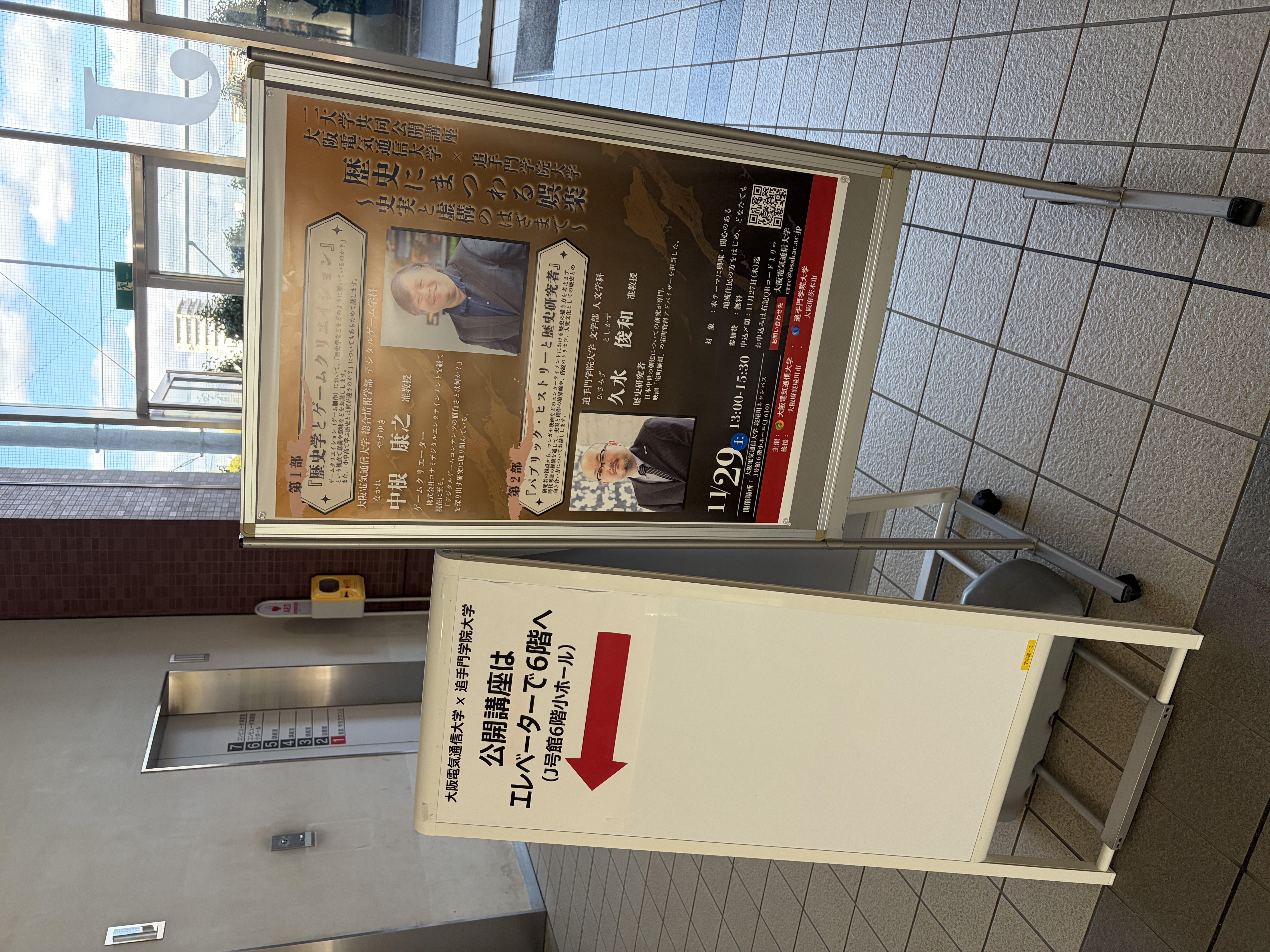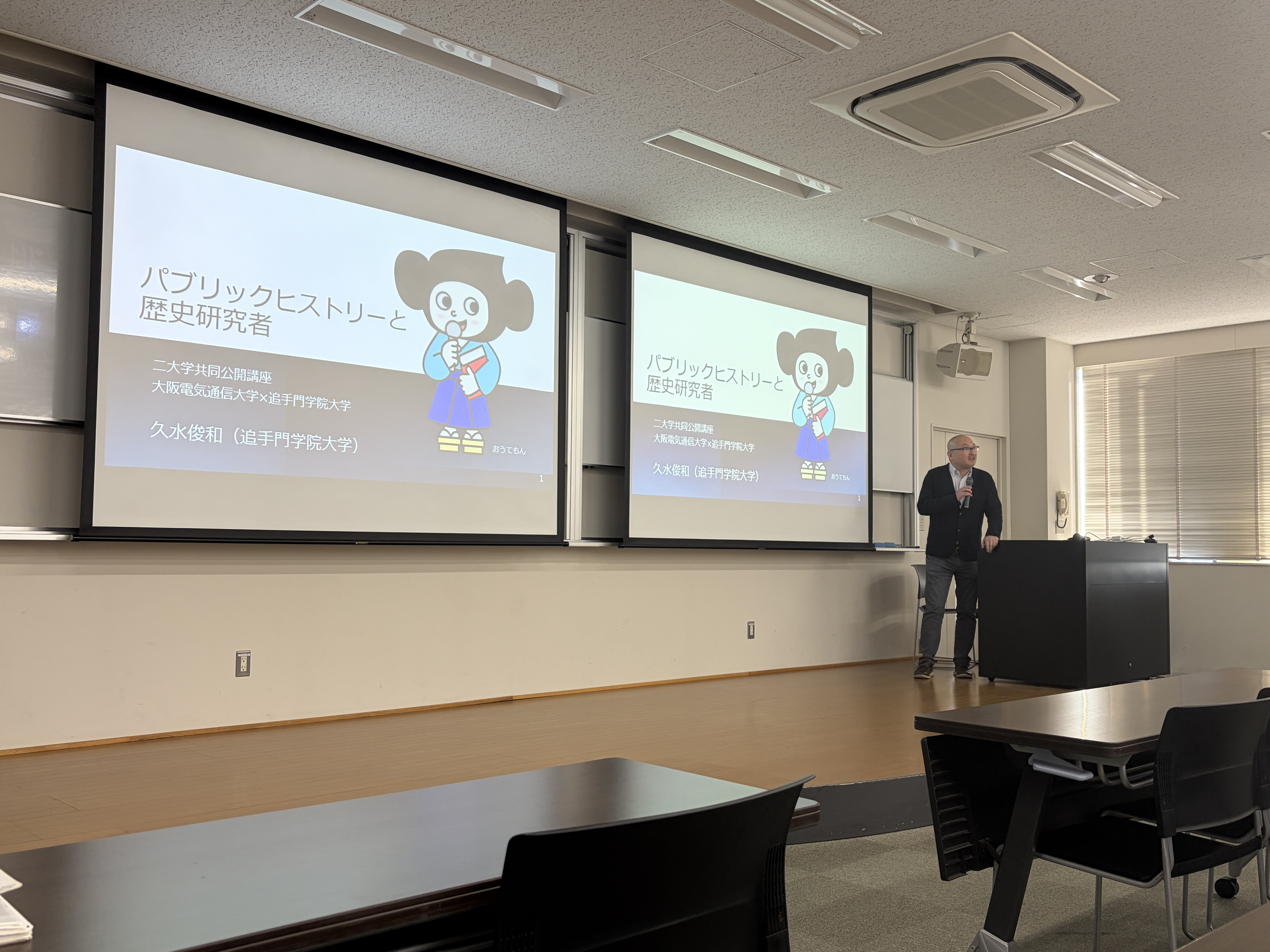 11月29日(土)、大阪電気通信大学 寝屋川キャンパスにて、二大学共同講座「歴史にまつわる娯楽 ~史実と虚構のはざまで~」を大阪電気通信大学と共催で開催し、文学部人文学科の久水 俊和准教授が「パブリック・ヒストリーと歴史研究者」をテーマに講演を行いました。