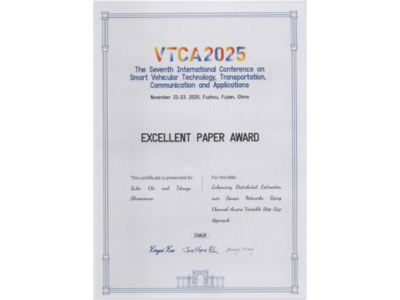 受賞した論文は「Enhancing Distributed Estimation over Sensor Networks Using Channel-Aware Variable Step-size Approach(チャネル状態を考慮した可変ステップサイズ法によるセンサネットワークにおける分散ブラインド推定の性能向上)」です。