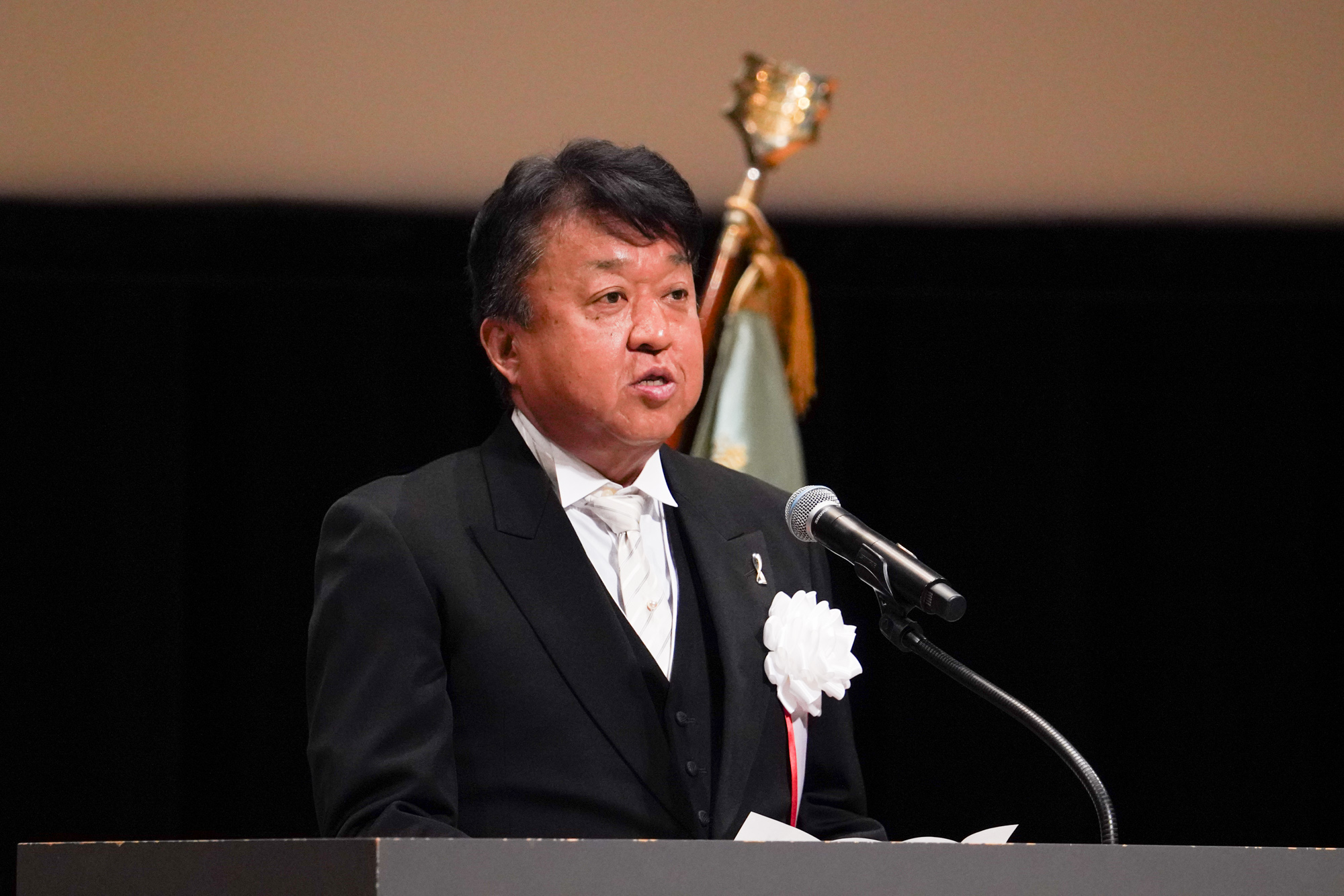 田口 順一理事長は卒業生に向けて、これからの人生において高い目標を掲げ、社会に貢献する人材として歩んでほしいと激励しました。スポーツ、医療、外食産業など、どの分野に進んだとしても、人々を幸せにし、社会に価値を生み出す仕事を目指してほしいと呼びかけました。