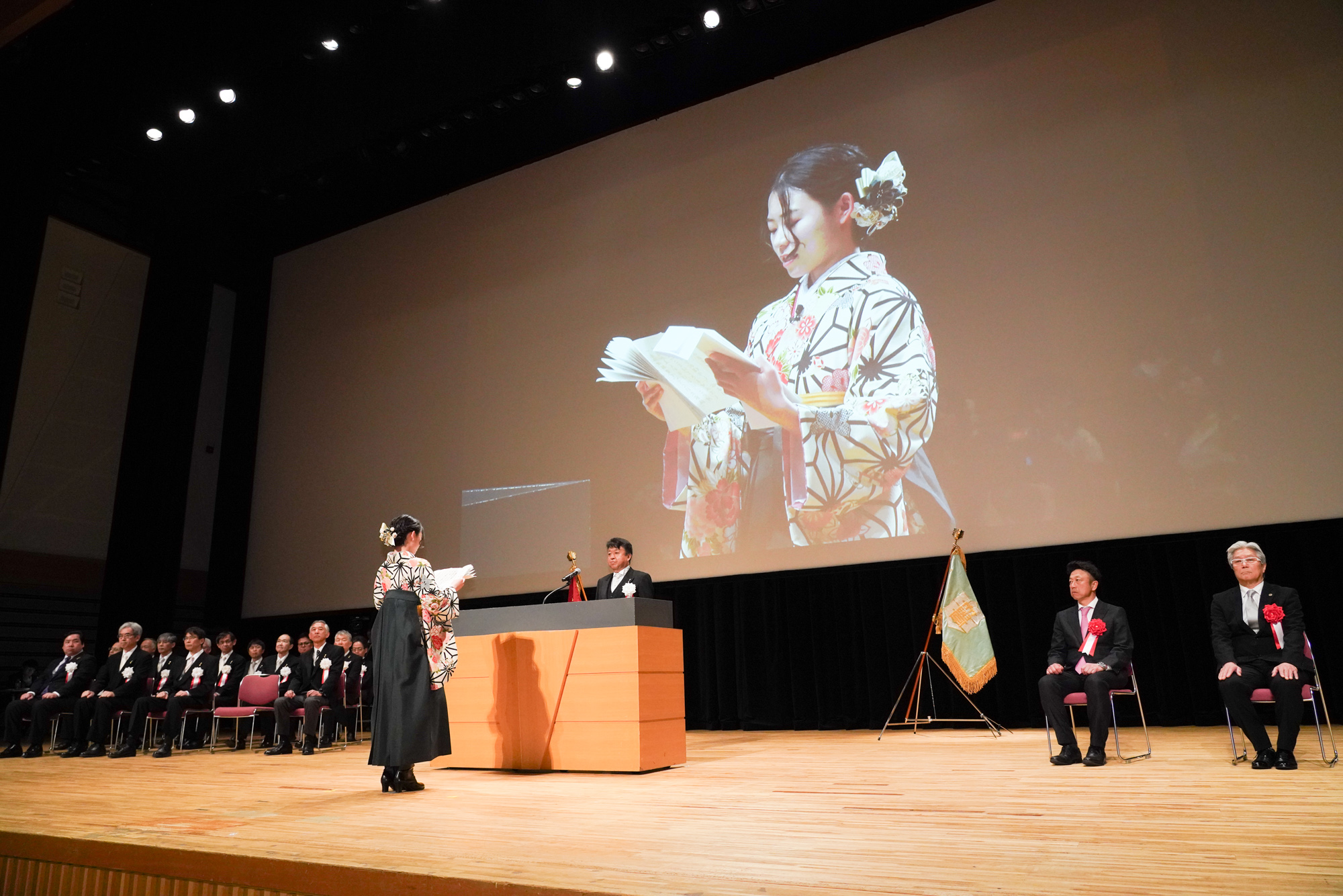 また、メジャーリーグで活躍する大谷翔平選手が、幼い頃から大きな夢を抱き努力を重ねてきたことを例に挙げ、目標を持ち挑戦し続けることの大切さを紹介。最後に、卒業生の今後の活躍に期待を寄せ、祝辞を送りました。